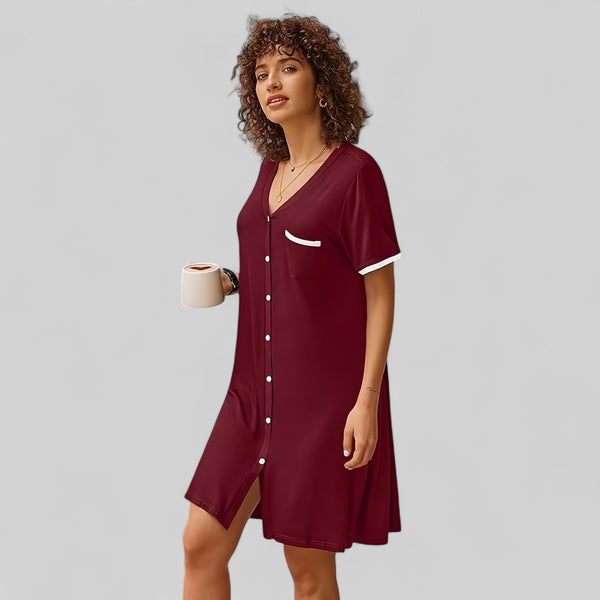 Chemise de nuit grise avec col en V et boutons