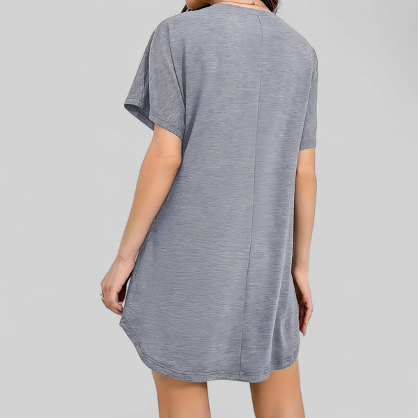 Robe de nuit courte grise à manches courtes avec col rond