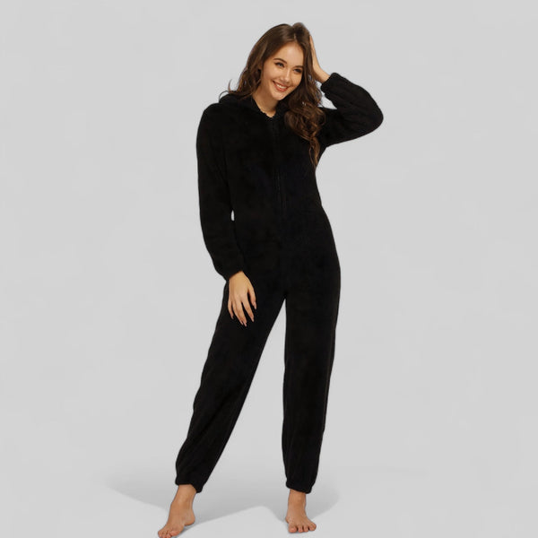 Combinaison pyjama femme en polaire avec capuche zippée