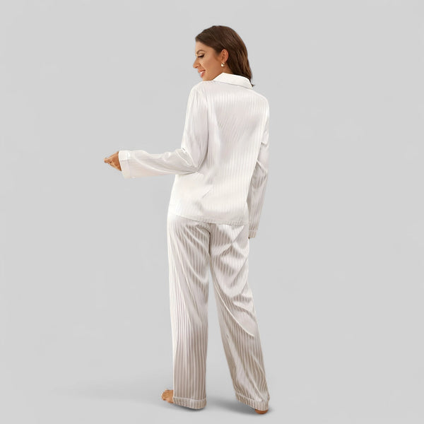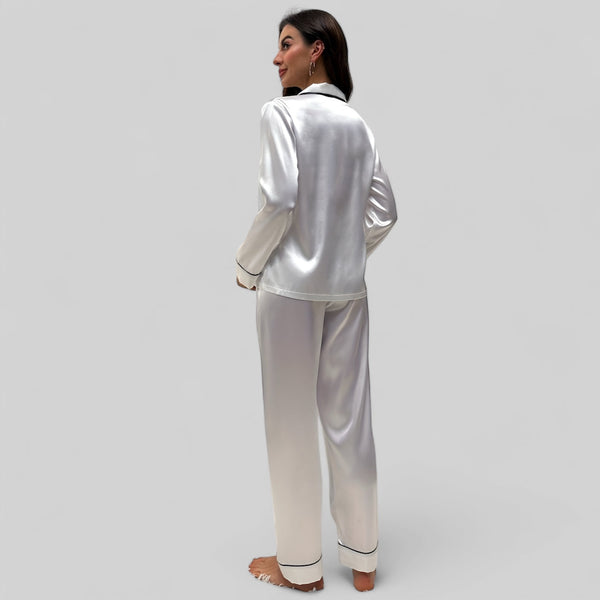 Ensemble de pyjama en satin blanc élégant - Chemise à manches longues et pantalon fluide pour femme