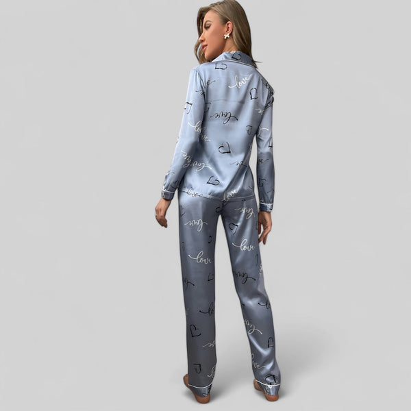 Ensemble de pyjama en satin imprimé "Love" pour femme