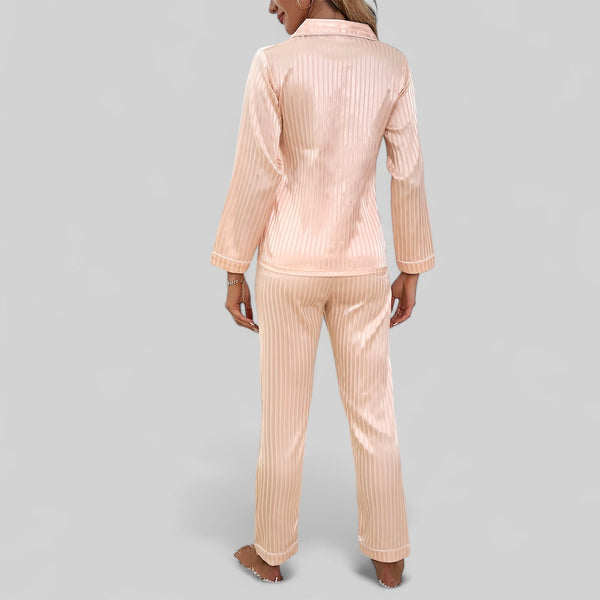 Pyjama en satin à rayures élégantes pour femme - Chemise de nuit et pantalon long