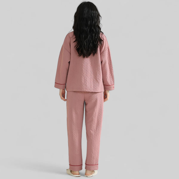 Pyjama femme en coton 100% rose avec col – Ensemble manches longues