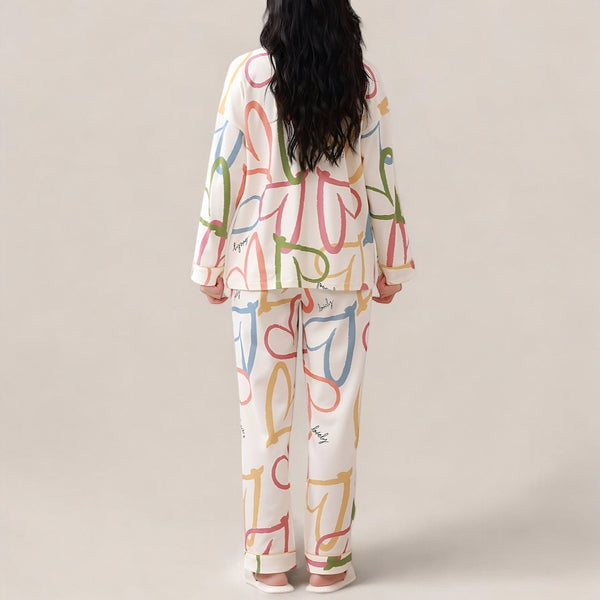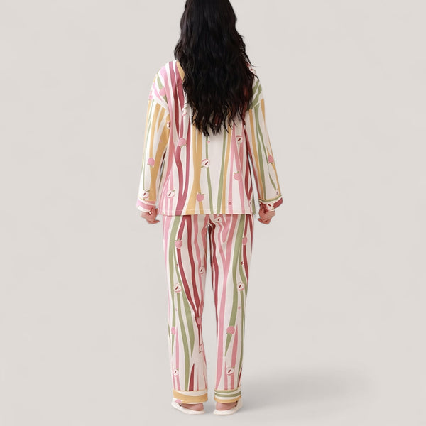 Pyjama femme en coton léger à motifs colorés – Ensemble manches longues