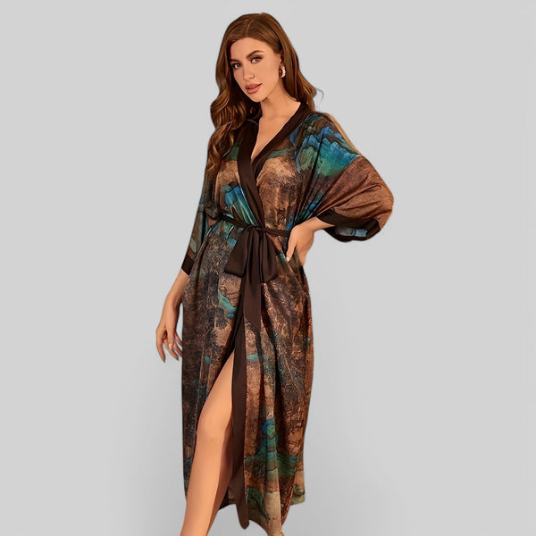 Robe de chambre élégante imprimé paysage chinois avec cei...