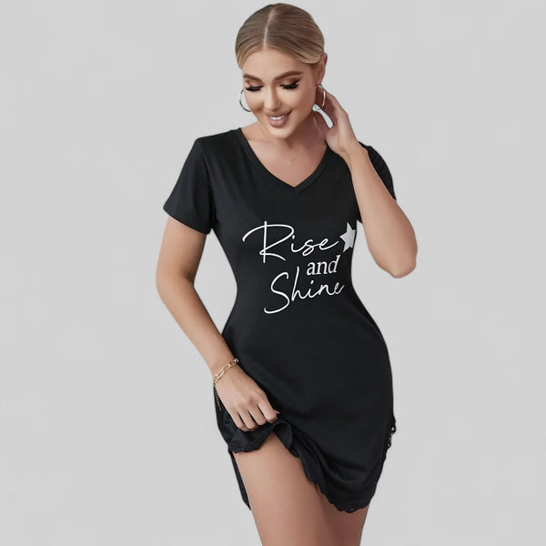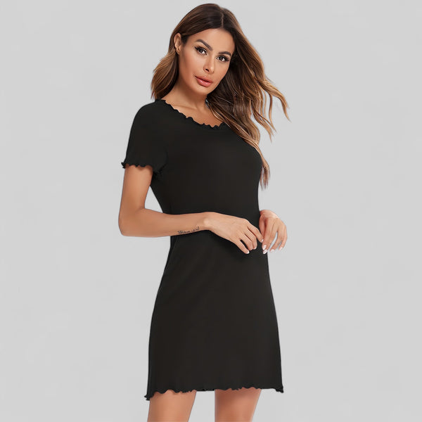 Robe de nuit avec manches courtes et détails ondulés