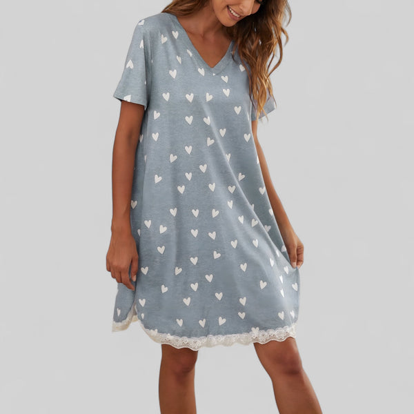 Robe de nuit femme avec imprimé cœurs et dentelle élégante
