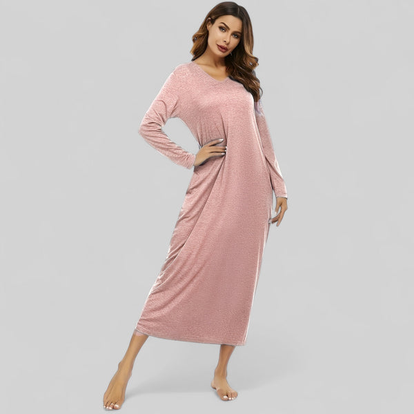 Robe de nuit longue à manches longues avec col en V et poches