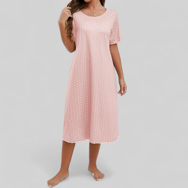 Robe de nuit midi à pois avec manches courtes