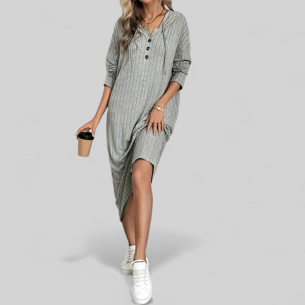 Robe longue en maille côtelée grise avec capuche et manch...