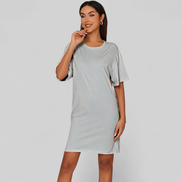 T-shirt robe gris clair en coton pour femme