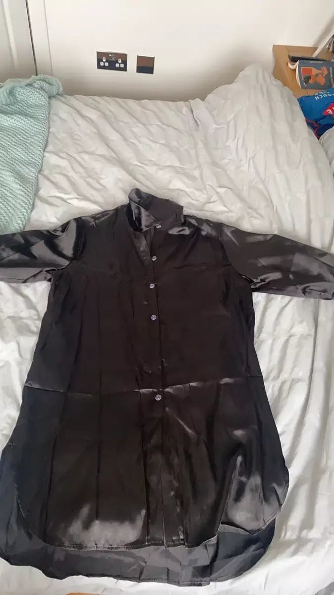 Ajoutez cette chemise de nuit noire satinée à votre garde-robe pour des nuits élégantes et confortables, tout en adoptant un style intemporel.